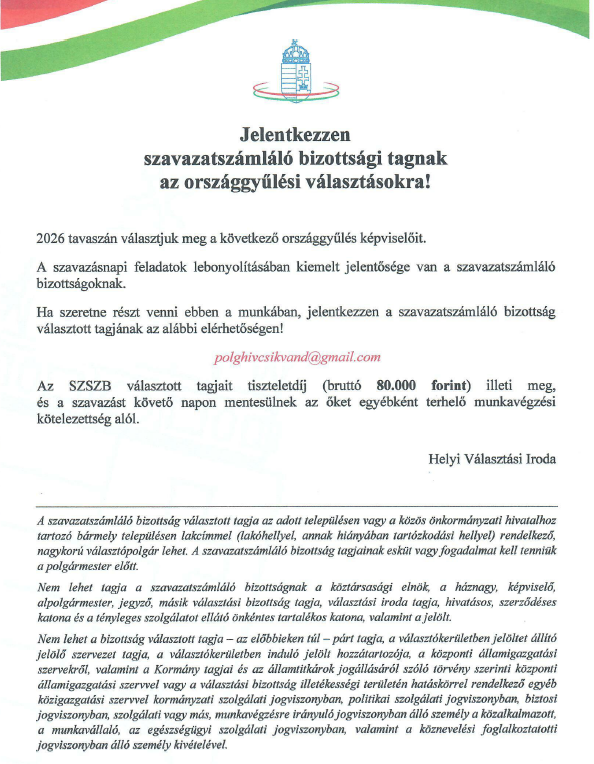 / Szavazatszámláló bizottsági tagok toborzása